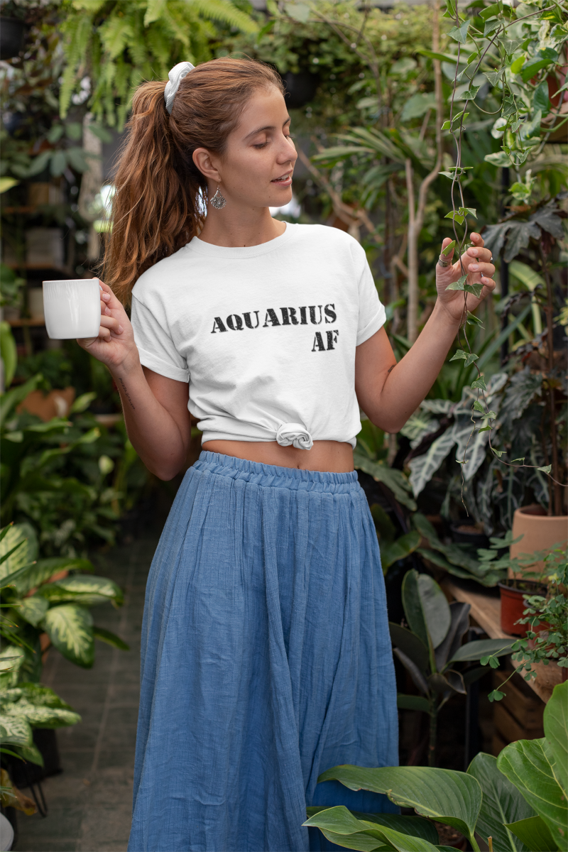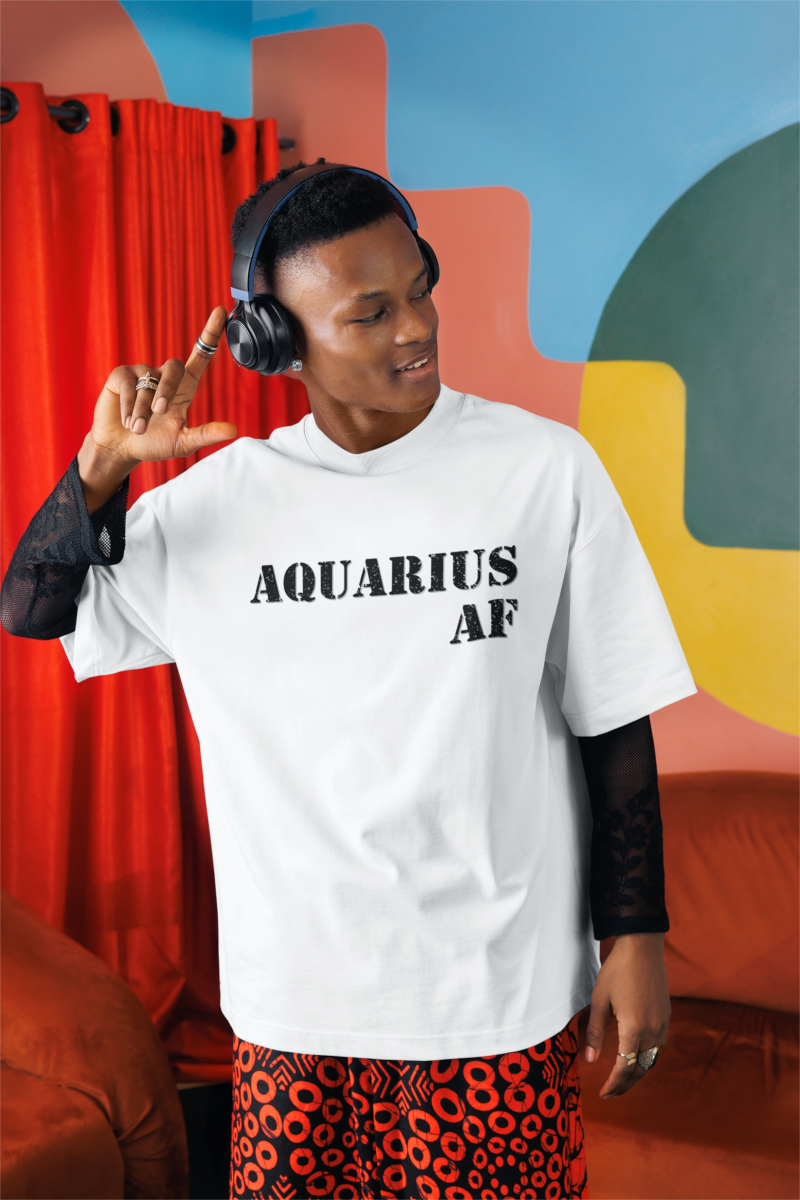 Have a good laugh, this T-shirt says it all. It features the words “Aquarius AF” in a black & gray stencil type font. T-shirt is light weight, breathable, unisex, soft-style, and comes in many sizes. Has two shirt colors available. Please see size chart for details to ensure a good fit.
