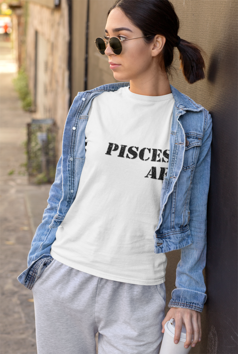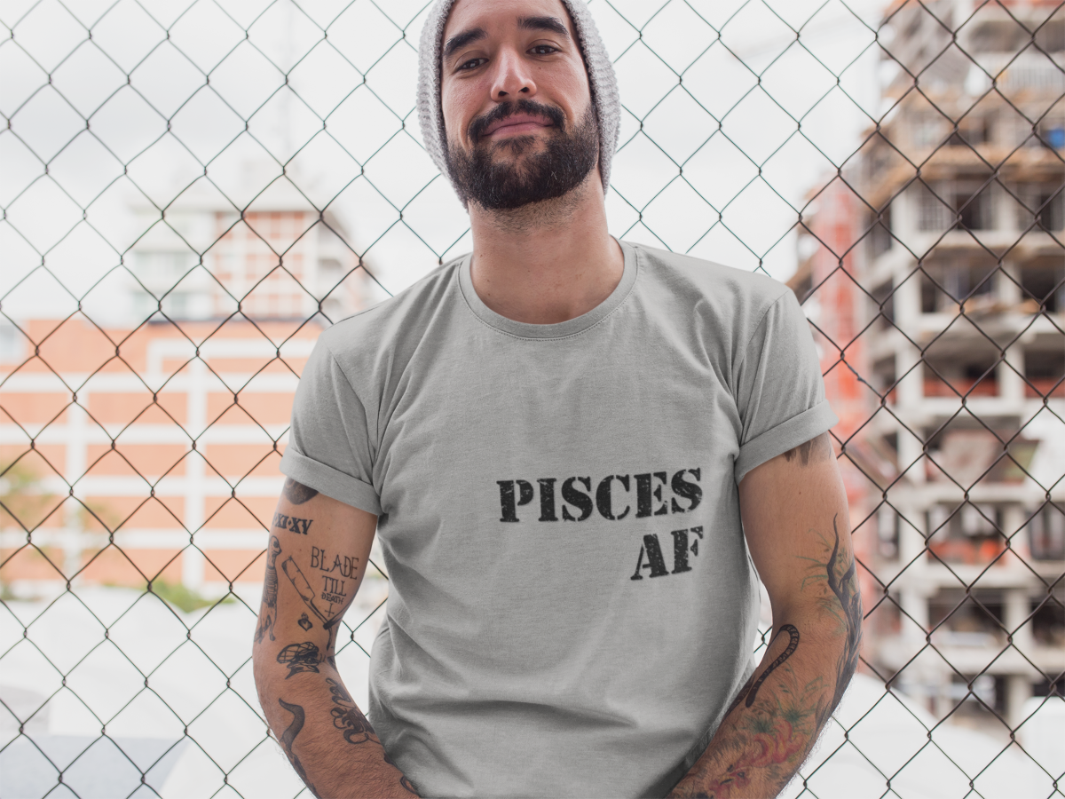 Have a good laugh, this T-shirt says it all. It features the words “Pisces AF” in a black & gray stencil type font. T-shirt is light weight, breathable, unisex, soft-style, and comes in many sizes. Has two shirt colors available. Please see size chart for details to ensure a good fit.