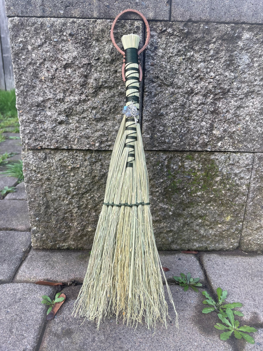 This slender broom can be used as a hearth broom, an altar broom, or cute decor! Sweep away small debris in your home, or negative energies from your sacred space, with this unique hand crafted broom.