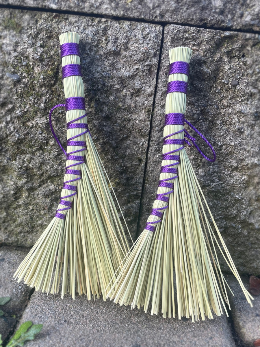 These brooms can be used as besoms, mini sweeping brooms, altar brooms, or cute decor! Sweep away (very) small debris in your home, or negative energies from your sacred space, with this unique hand crafted broom.